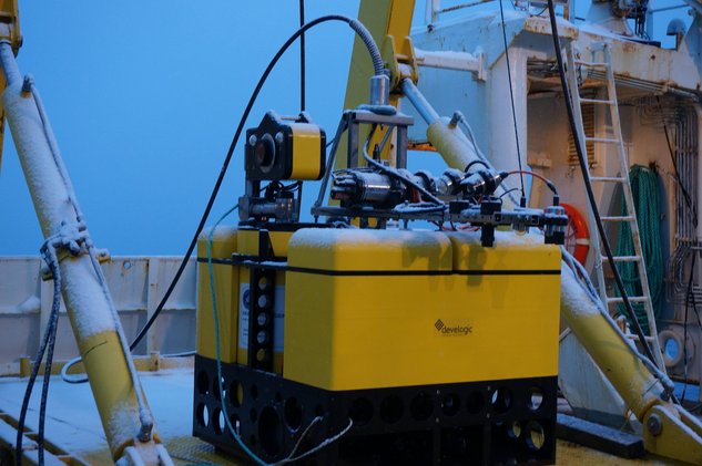 Instrumentplattformene som skal overføre data via akustisk kommunikasjon er plassert litt utenfor hovedtraseen der kabelen er lagt. De er produsert av Develogic i Hamburg.