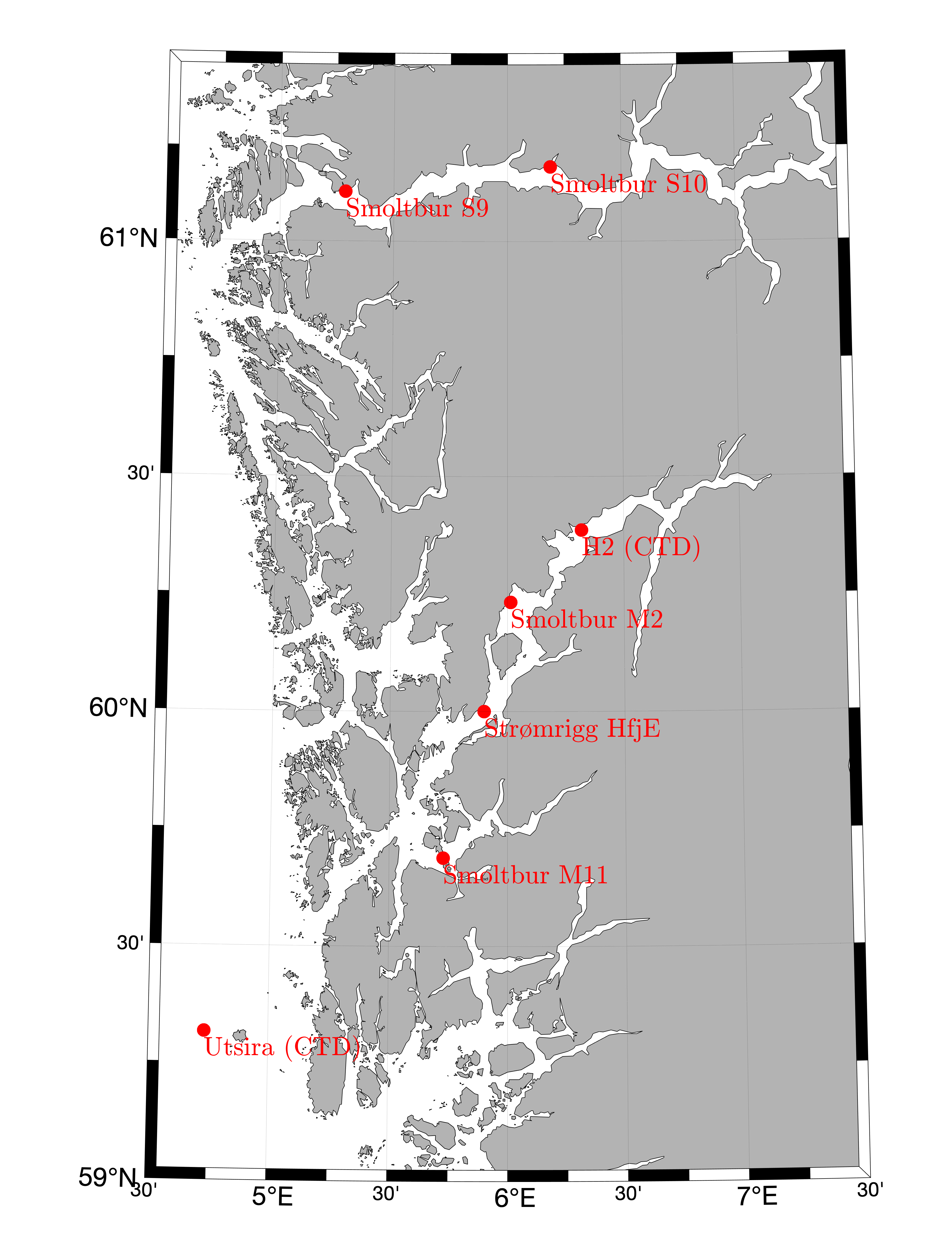 Asplin L, Albretsen J, Johnsen IA, Sandvik AD (2020) The hydrodynamic foundation for salmon lice dispersion modeling along the Norwegian coast. Ocean Dynamics. doi: 10.1007/s10236-020-01378-0.