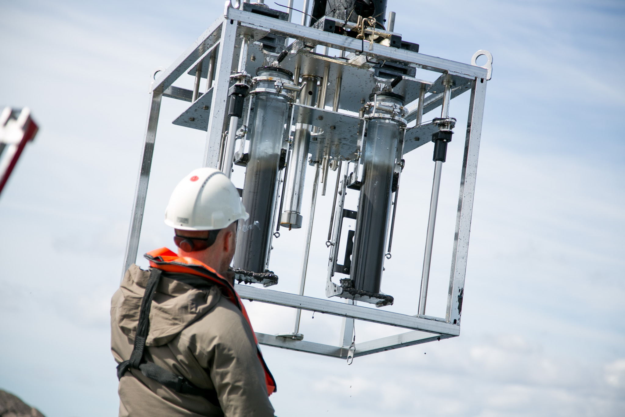 Med ein kjernehentar tar forskarane opp sylindrar av sediment frå havbotnen. Fortløpande analyserer dei dyrelivet i sedimentet og måler oksygeninnhaldet nedover i søyla. I alt tar dei opp prøver frå seks stasjonar for å få eit representativt utval. Fire av stasjonane er brukt før av andre forskingsaktørar.