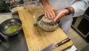 Kamskjell – I selve «pucken» inngår også kamskjell sammen med kveita. Kamskjellene bidrar med sødme og konsistens, men representerer også et steg ned i næringskjeden. For skjell er såkalte «lavtrofiske arter» - bærekraftige ressurser som menneskene bør spise mer av. Kamskjell er mager mat, men har likevel høyt innhold av omega-3.