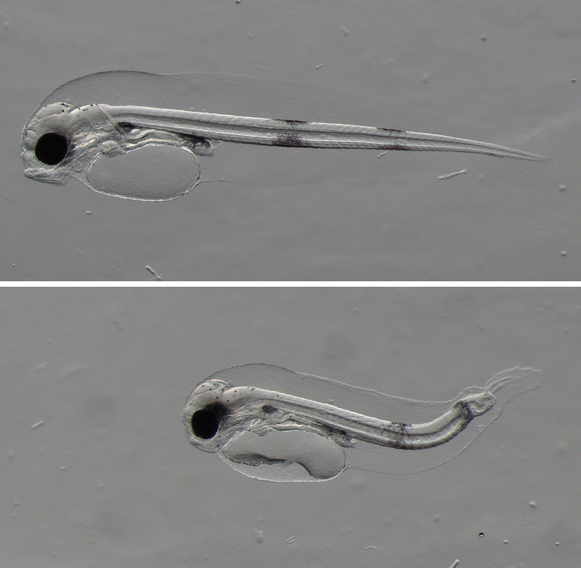 – Den vanlegaste forma for misdanning er i aksen til larven. Altså ryggraden. Normalt sett, er torskelarven lang og rett, men for mange er ikkje aksen forma korrekt, forklarar Alix.