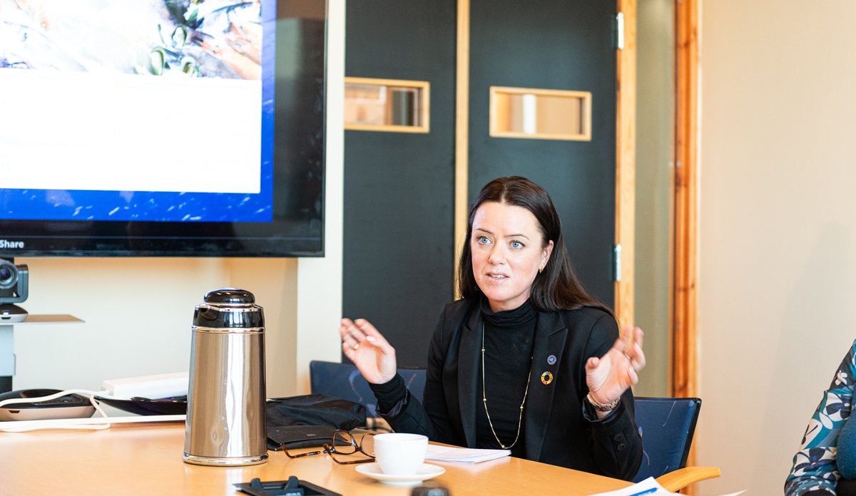 – Jeg setter stor pris på besøket og den gode kontakten vi har med Vidar Helgesen. Våre data, forskning og råd om tilstanden og utviklingen i havet, har aldri vært mer etterspurt og relevant – på godt og vondt, sier havforskningsdirektør Nils Gunnar Kvamstø.