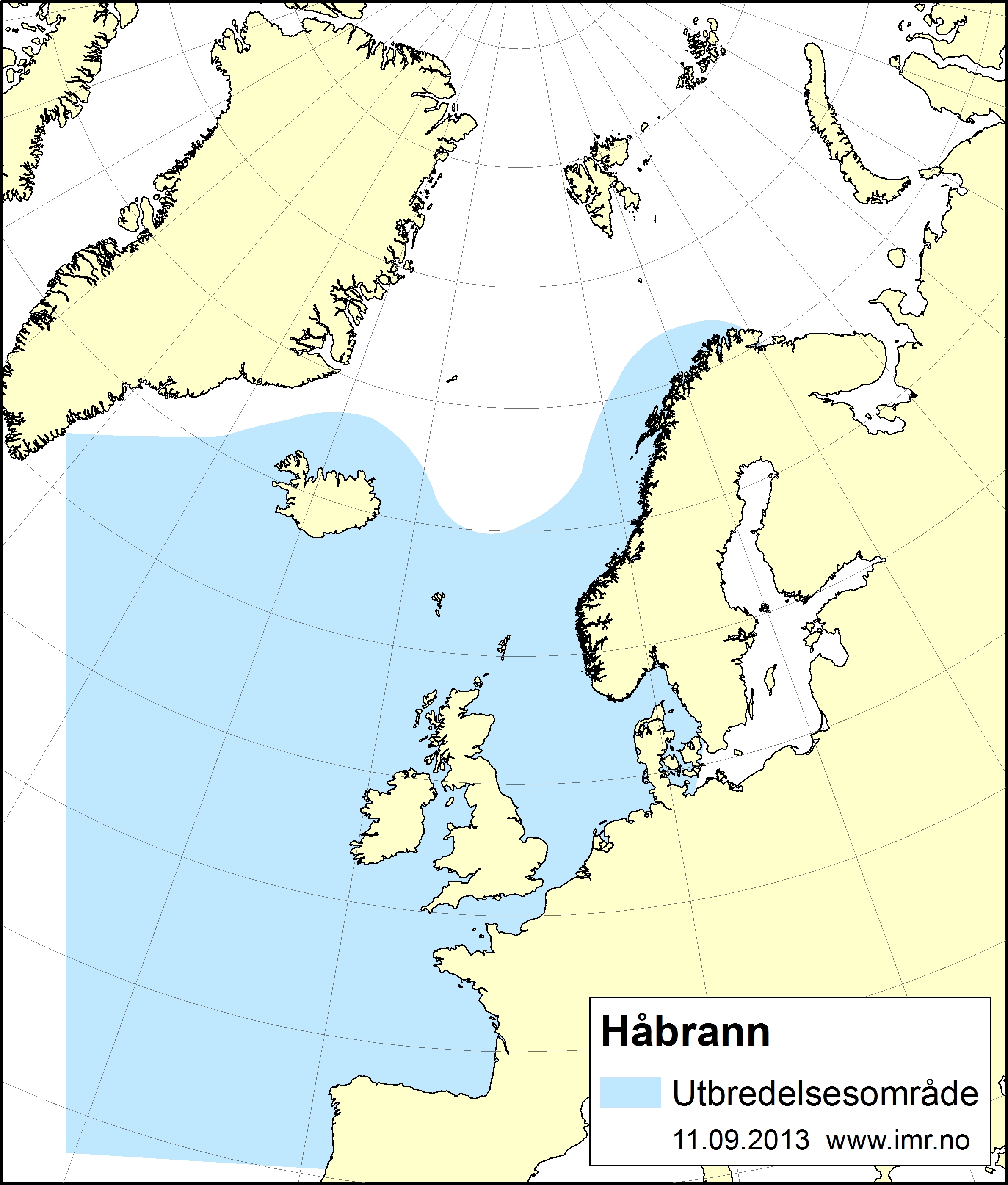 Håbrannen kan bli vel 3 m lang og veie 150–200 kg, omtrent halvparten så stor som hvithaien, men likevel et imponerende syn. Den er den vanligste arten i håbrannfamilien (Lamnidae, også kalt makrellhaier) i nordlige farvann, utbredt i hele Nord-Atlanteren og Middelhavet, men også langs norskekysten til det sørøstlige Barentshavet. Normalt holder den til et stykke ute til havs der den kan opptre jaktende i eller nær overflaten. Om vinteren trekker den trolig dypere, til 200–1000 meters dyp.